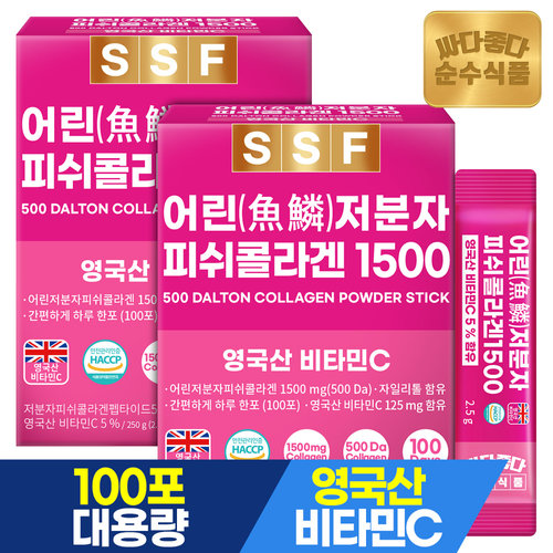 순수식품 어린 저분자 피쉬콜라겐 1500mg 2박스 x 100포 실속형 분말 스틱 비오틴 비타민C