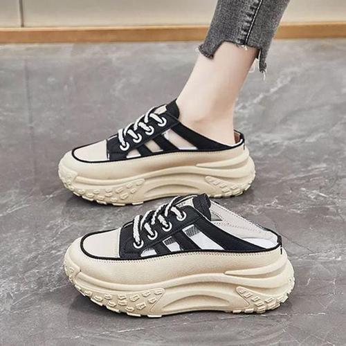 여성 트렌디 캔버스 스니커즈 뮬 캐주얼 데일리슈즈 여성스니커즈 스니커즈뮬 굽낮은뮬