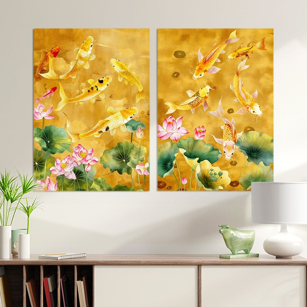 돈 들어오는 다복 황금 잉어 금전 그림 캔버스 액자 풍수 거실 풍수 인테리어 4종