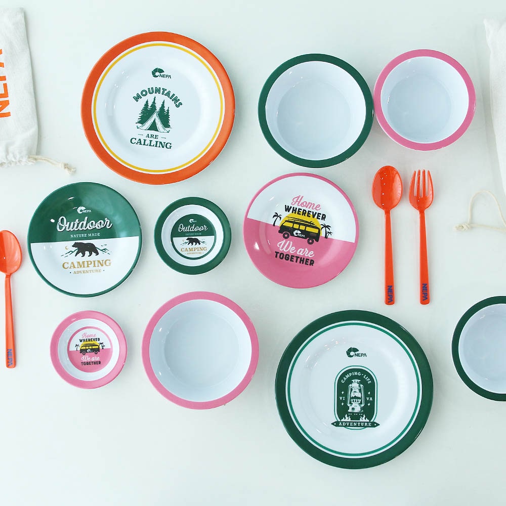 여행용 캠핑 도구 피크닉 야외 장비 나이프 숟가락 포크 식기 세트 컵 그릇 접시 필수품 1인용