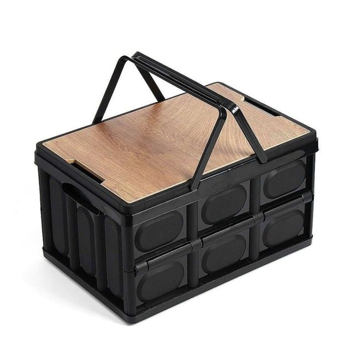 카르닉 캠핑 폴딩박스 56L 우드상판 세트 접이식 카고 수납 정리함 폴딩 오픈 도어