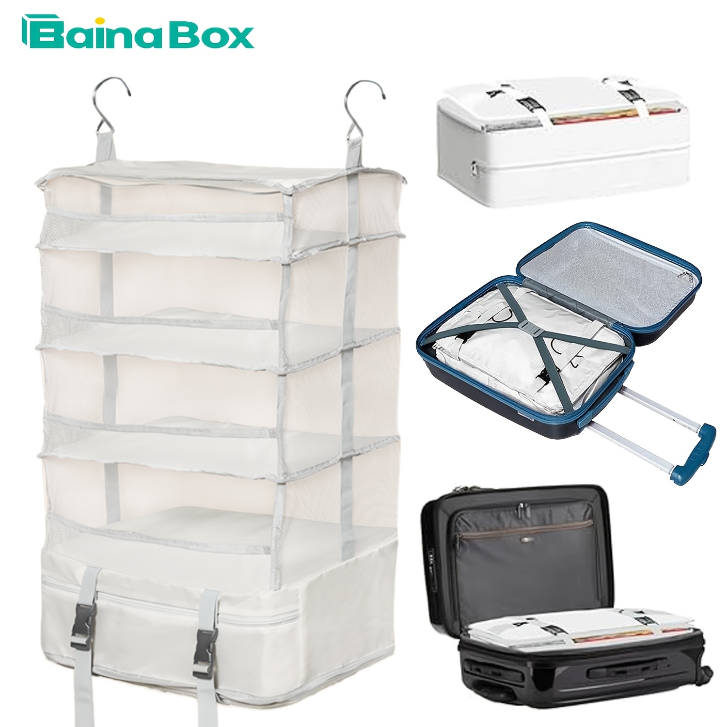 TEMU 바이나 박스 신형 업그레이드 휴대용 걸이형 여행 선반, 4단 접이식 수납백 그리드 앞면 스토퍼 네트 및 측면 하중 스트랩, 짐 정리함, 기내용 의류 보관함, 확장형 패킹 큐브, 여행 필수품|폴딩박스