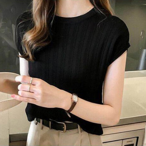 [모두쇼핑]여성 여름 출근룩 코디 캡소매 캐주얼 반팔 티셔츠 베이직핏나시티 여름여자니트 여름데일리룩