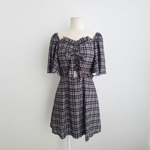 미즈큐즈 / (3XL-5XL까지) 팔뚝살커버 체크 리본 원피스 수영복