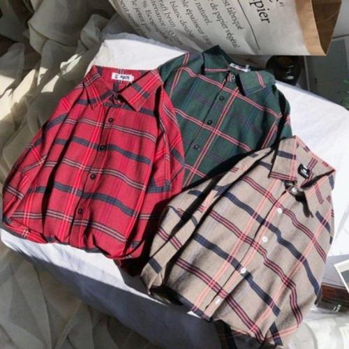[셀러에이드]체크패턴 남성 긴팔 셔츠 커플용 사계절 셔츠 남방