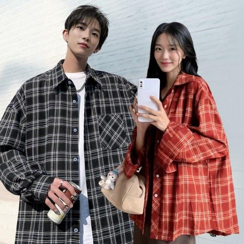 커플셔츠 체크 난방 간절기 가을 남성 긴팔 레이어드