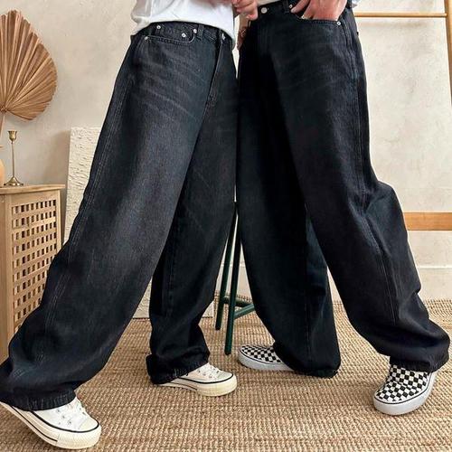 [다잇템][다잇템] 여자 블랙진 커브드 커플팬츠 스트릿 와이드핏 남자 청바지_22842805_588872