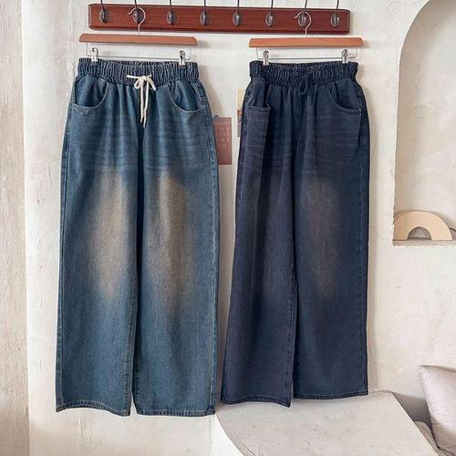 [다잇템]여자 넓은 커플데님팬츠 남자 고무줄 청바지