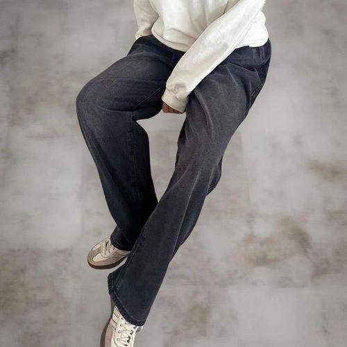 EAMT 남자 일자핏 청바지 빈티지 블랙 부츠컷 데님팬츠 커플 배기핏 캐주얼 인슈어 레이어드 EUNG1
