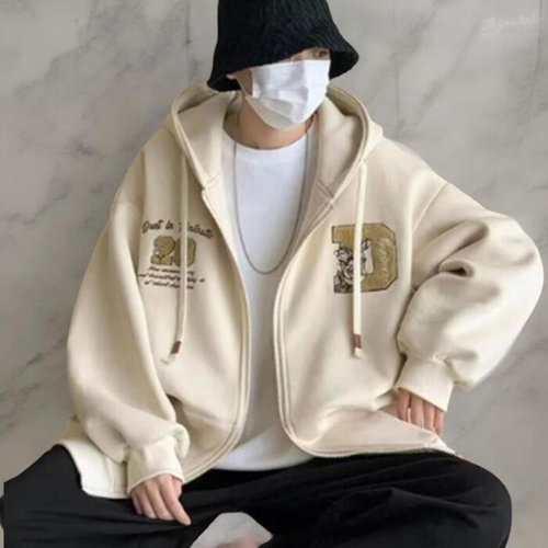 [옷자락]여성 남성 커플 패션 루즈핏 퍼프 프린트 후드 스트링 집업
