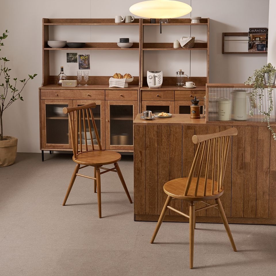 [라로퍼니처]포트 고무나무 원목 식탁 의자 카페 인테리어 체어 1+1