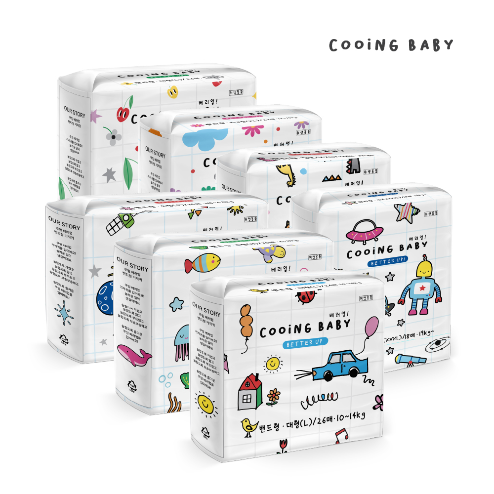 쿠잉 베러UP 풀커버 팬티 밴드 기저귀 8팩 (4+4팩 골라담기)