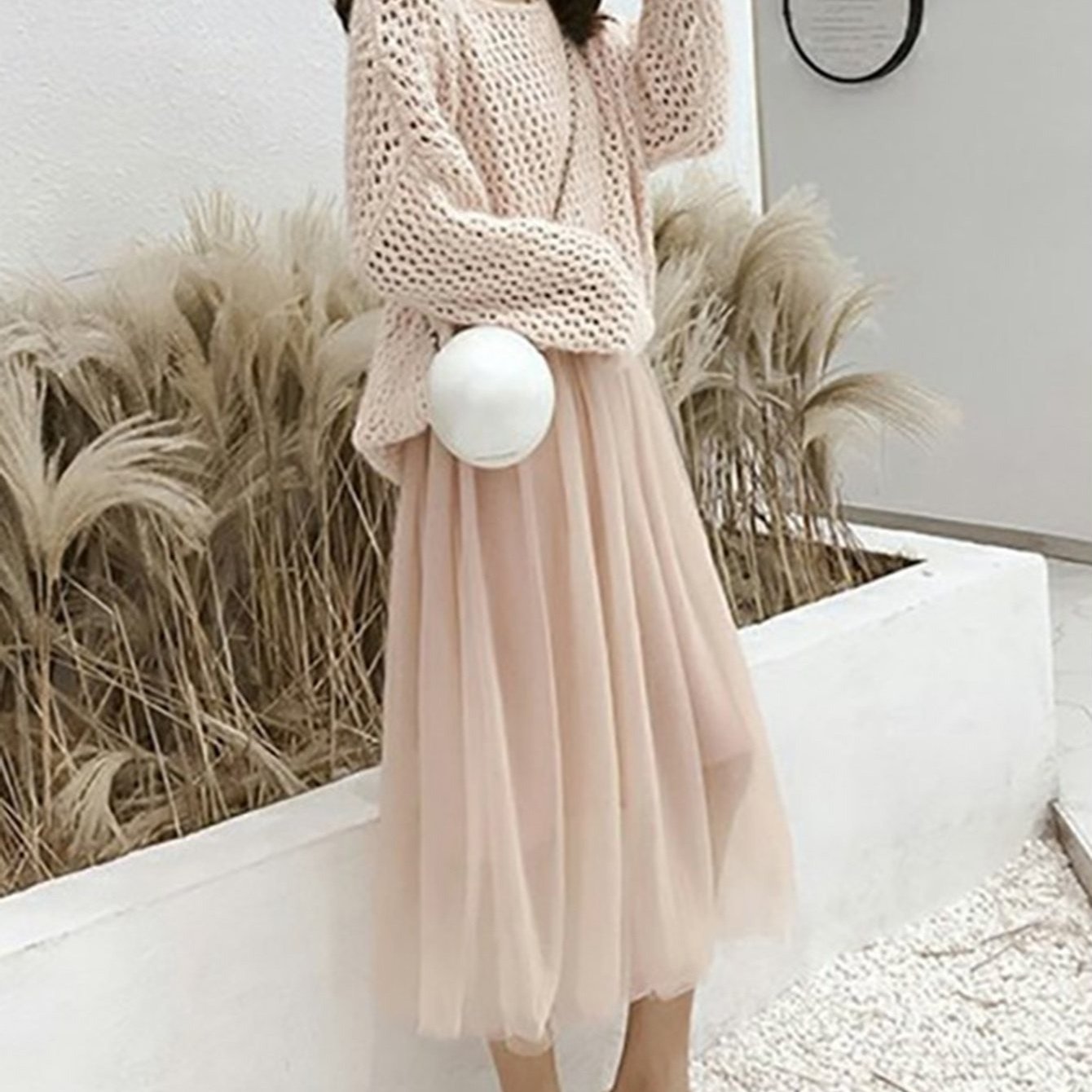 TEMU A라인 실루엣의 3겹 튤 소재, 넓은 플레어 디자인의 하이웨이스트, 핏 좋은 요정 스타일 롱 스커트
