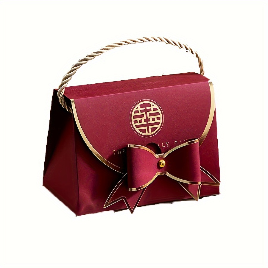 TEMU 그녀/그를 위한 선물 12/20개 세트 우아한 진홍색 & 골드 웨딩 페이버 박스 (트윈 리본 & "더블 " 엠블럼 포함) - 휴대용 종이 캔디 초콜릿 선물 상자, 기념일, 브라이덜 샤워, 게스트 선물, 축하 디자인 | 장식 엠블럼, 웨딩 선물, 크리스마스, 할로윈