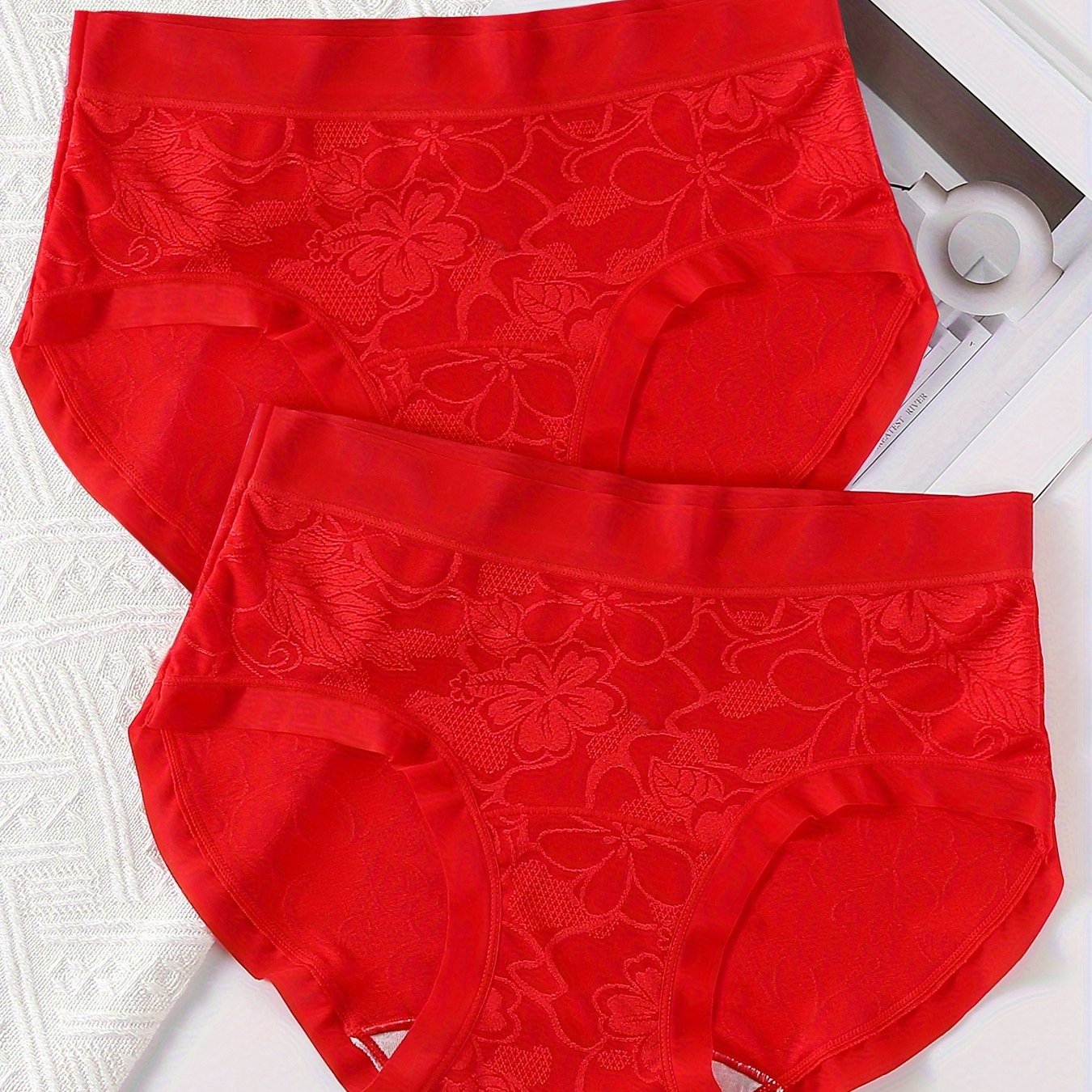 TEMU 여성용 새해 레드 컬러 팬티 2개입, 편안하고 통기성 좋은 크리스마스 팬티, 여성 란제리 & 속옷
