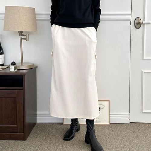 [오너클랜]인기상품 여성 코듀로이 포켓 밴딩 롱 스커트 캐주얼 골덴 치마 [WCDDB34_250916]