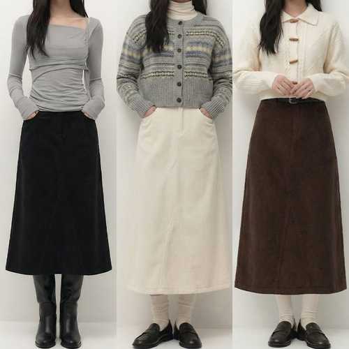 [오너클랜]인기상품 가을 겨울 여성용 코듀로이 골덴 밴딩 롱 스커트 치마 [WE67D13_250915]