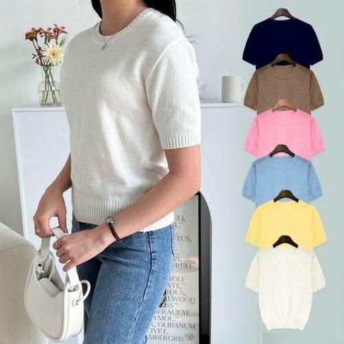 [에이치플러스몰]코튼 인기 데이린 라운드 반팔 감성 니트 230421 반팔