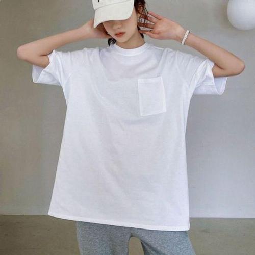 [에이치플러스몰]라운드 베이직 오버핏 코튼 여성 올데이 포켓 베이직