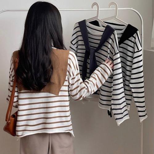 [오너클랜]인기상품 얇은 스트라이프 니트 숄 세트 스타일리쉬 슬랙스코디 [WF0D87B_250916]