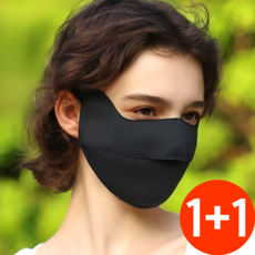트레조르 1+1 자외선 차단 쿨 마스크 스포츠 골프 얼굴 햇빛 가리개, 블랙+블랙, 1세트