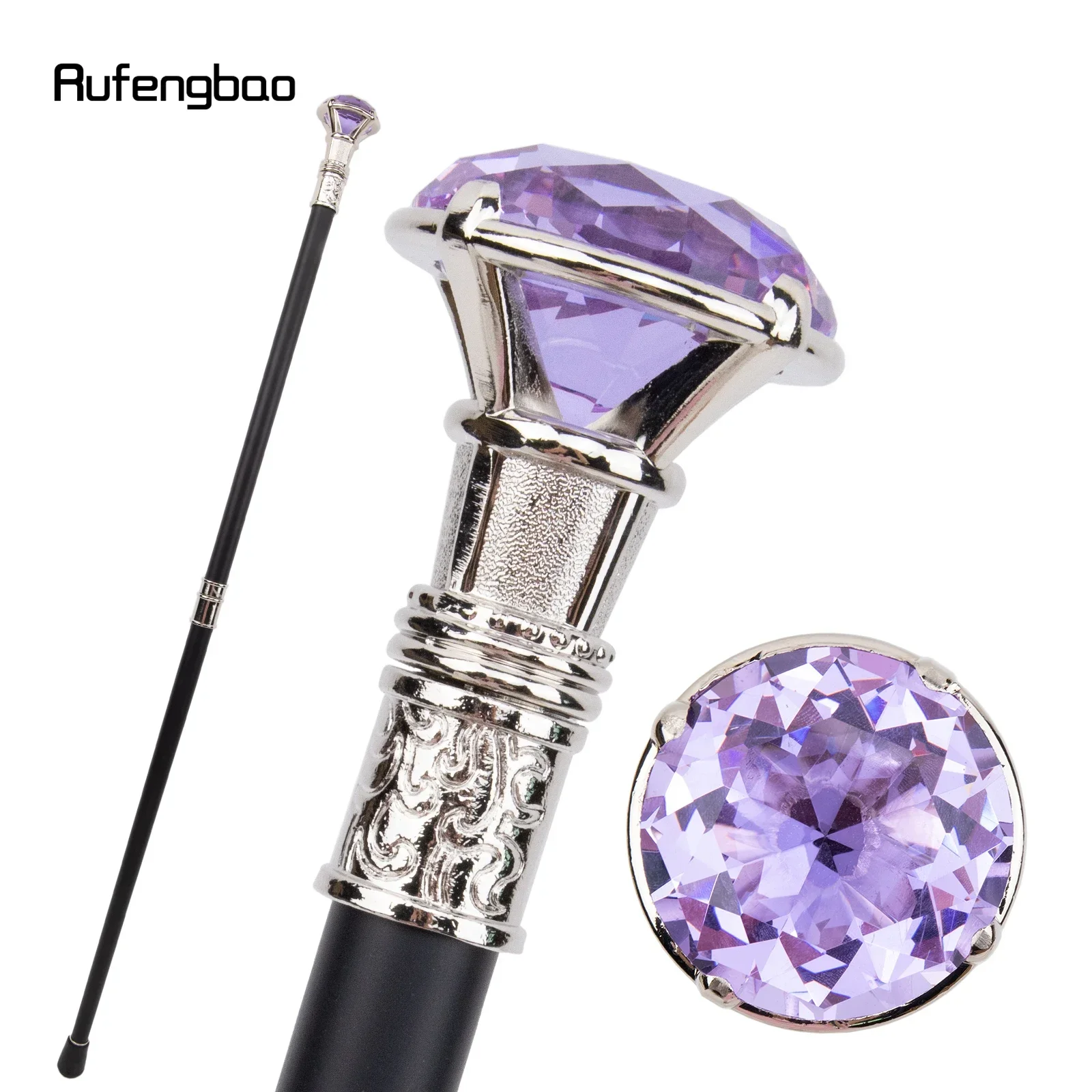 연보라색 다이아몬드 화이트 워킹 스틱 패션 지팡이 신사 우아한 코스프레 지팡이 손잡이 크로시어 93cm 공연 무대 지팡이