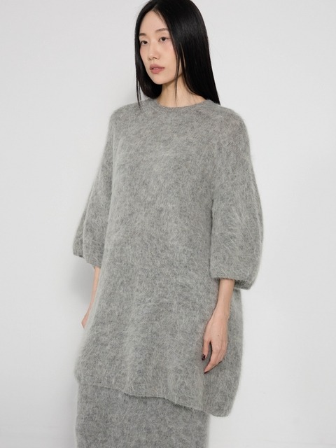 [라 코스모] 클라우드 베이비 알파카 니트 탑 - 라이트 그레이