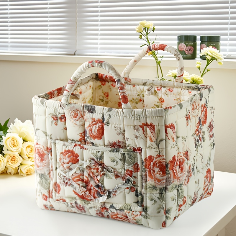 TEMU 모던 패브릭 스토리지 바스켓 - 대용량 멀티펑셔널 플로럴 홈 스토리지 바스켓, 러스틱 스타일 홈 스토리지 바스켓, 의류 정리용 스토리지 바스켓