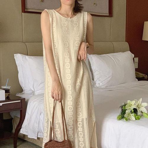 크로쉐 레이스 민소매 롱원피스 내추럴 휴양지룩 WFK80BC