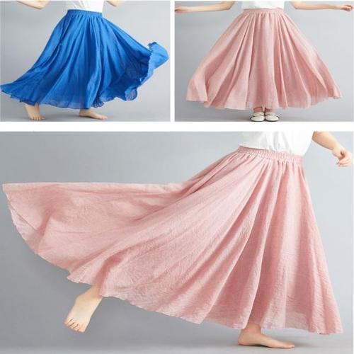 여성 플레어 여리여리 봄 면 밴딩 롱스커트