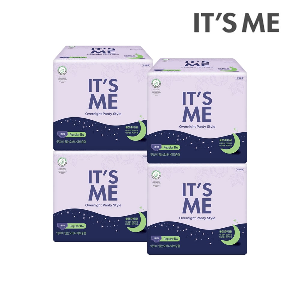 잇츠미 유기농 순면커버 입는 오버나이트 생리대 중형 8P x4개