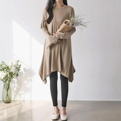 [유야]여성 무지 스판 긴팔 훌 미디 원피스 -FOP0599- 봄 가을