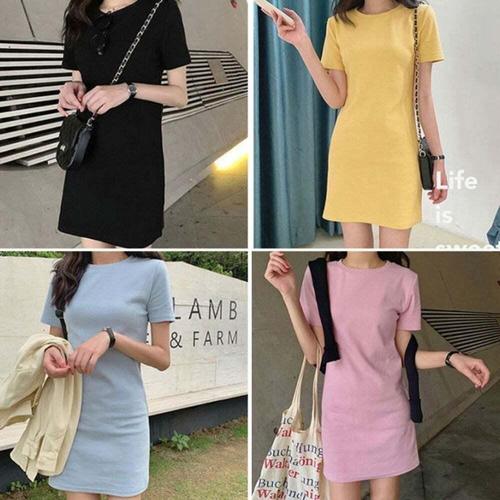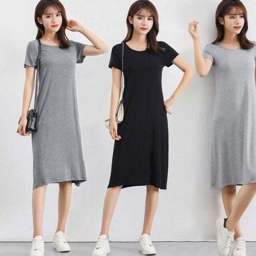 [오너클랜]인기상품 쿨샵 심플한 무지 디자인 스판 면 반팔 미디원피스 [W9D10C3_260409]