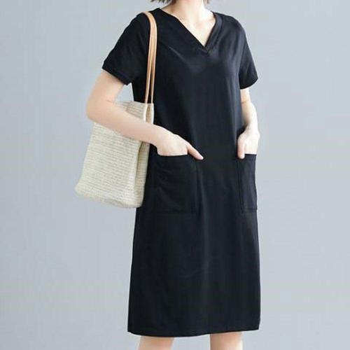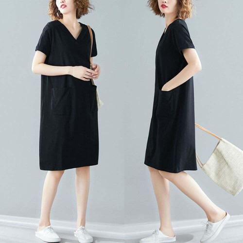 [오너클랜]인기상품 여성 블랙색상 슬림한 브이넥 깔끔 무지 반팔 원피스 [W9D25AF_260409]