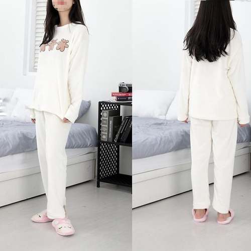 bns 쿠키베어 아이보리 여성용 극세사 수면잠옷세트 겨울/보온/패션/방한/따뜻한양말