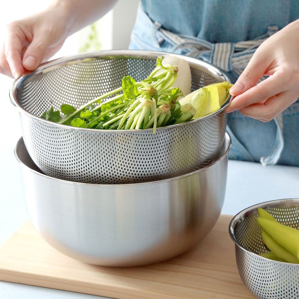 올지 SUS 304 채반 믹싱볼 2단 세트, 1세트, 믹싱볼 + 채반볼