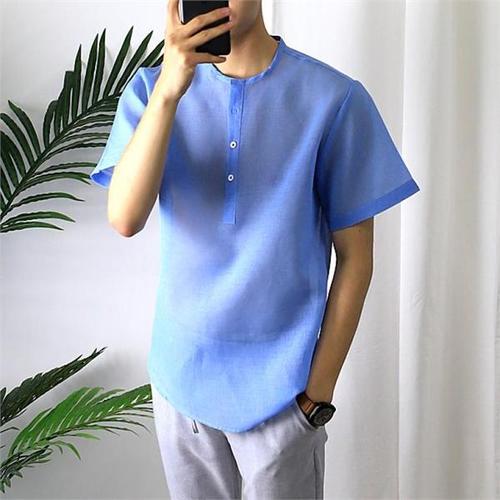 [후앙스]쿨링 베이직 쓰리버튼 오버핏 헨리넥 반팔남방 SMST9747