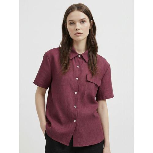 [샵앤]여성 카라넥 쿨링 린넨 반팔 루즈핏 블라우스 셔츠 NARU-WBL-21084-레드