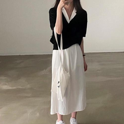 [옷자락] 여성용 봄 여름 쿨 내추럴 루즈핏 카라 반팔 원피스