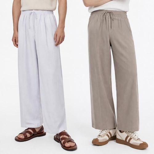 [디바옴므]COOL 린넨 스판 원턱 와이드 밴딩 팬츠 바지 남성 남자 홈웨어 트레이닝