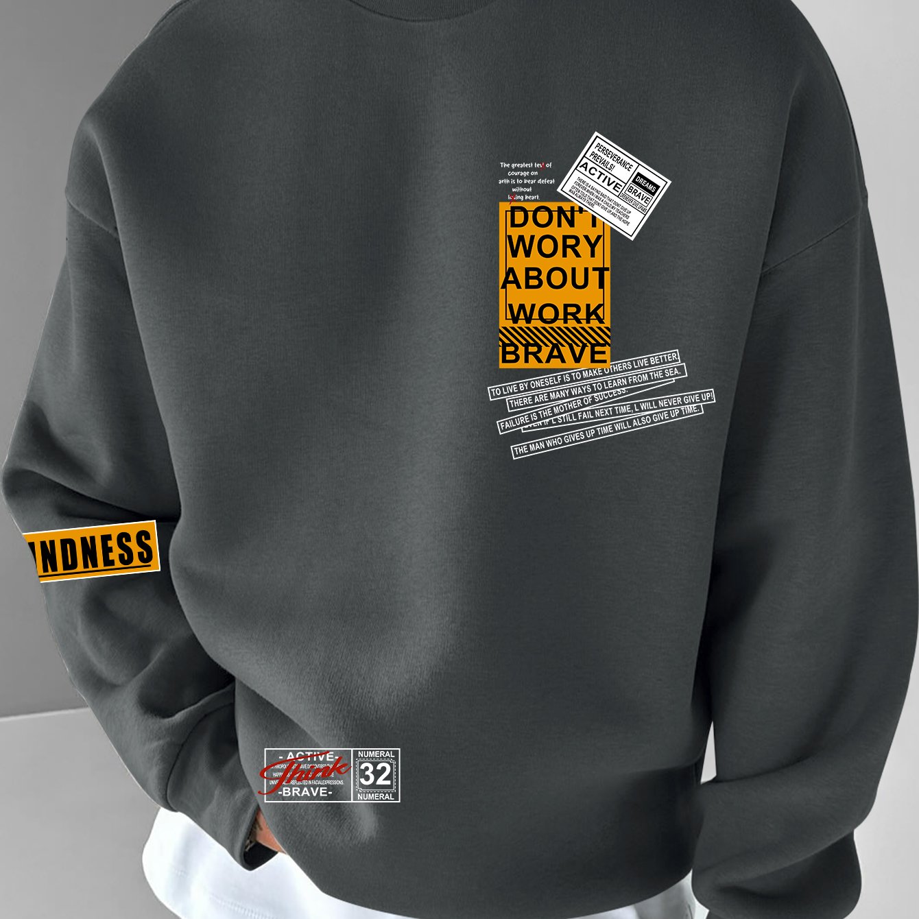 TEMU 남성 캐주얼 스트리트웨어 스웨트셔츠, "DON'T WORRY ABOUT WORK BRAVE" 프린트 - 부드럽고 편안함, 세탁기 사용 가능, 루즈핏, 라운드넥, 야외 활동, 쇼핑 및 축제에 적합, 축제 의류 | 편안한 핏 스웨트셔츠 | 부드러운 원단 스웨트셔츠|테무쇼핑