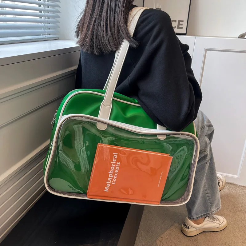 대용량 피트니스 가방 여성용 고급 투명 가죽 짧은 여행 여행 가방 경량 솔리드 컬러 방수 크로스 바디 비즈니스 여행 가방