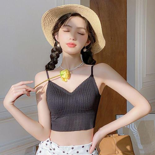 뷰티백 여성 캡나시 크롭 민소매 캐미솔 브라 끈여자 나시 여름셔츠 여름 레이어드 이너 이너탑