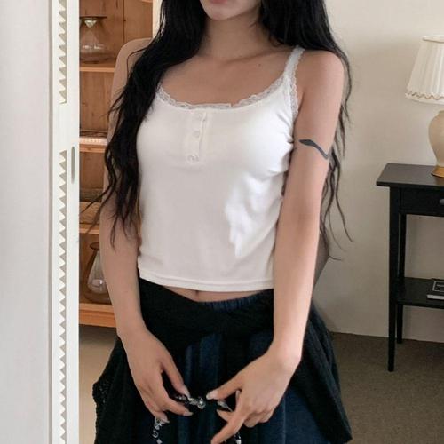 [오노마] ONM 여성 레이스나시 단추 브라탑 캡내장 나시티 크롭