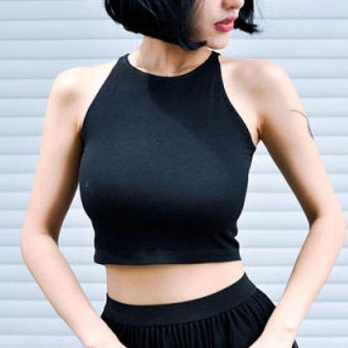 [옷자락] 여성 유넥 홀터 크롭 무지 나시 스판 나시