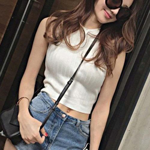 [오너클랜]인기상품 민소매 크롭 나시티셔츠 패션 캐주얼룩 골지티셔츠 [W95F736_260408]