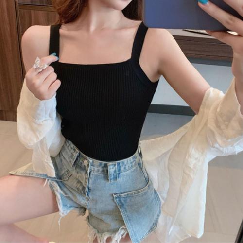 슬림 골지 스퀘어넥 크롭 나시 여름 데일리 섹시탑 WFIXCSE