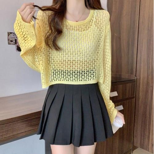 [옷자락]여성 비스코스 짜임 시스루 크롭 니트탑