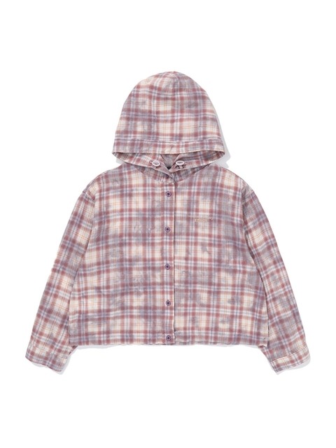 ZARA 자수 플란넬 체크 크롭 셔츠 - 화이트 그린