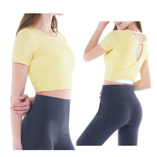 크롭 레이온 요가 반팔 레몬 1P 운동 요가복 티셔츠 WFIYWN8